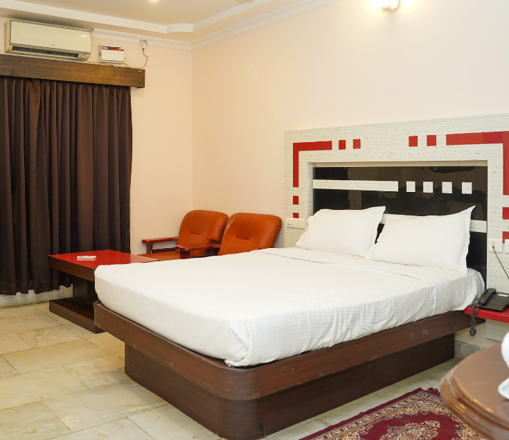 Our Double Deluxe A/C Room offers enhanced comfort with spacious interiors and elegant furnishings. Designed for relaxation and convenience, the room features comfortable bedding, air conditioning, and modern amenities to ensure a pleasant stay.